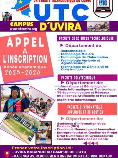 Si vous avez besoin d'aide pour remplir le formulaire d'inscription ci-dessous en ligne, n'hésitez pas de visiter le Bureau administratif de l'UTC pour obtenir l'assistance de notre personnel de service d'admission, Mme Espérance PANDA Ladouce.